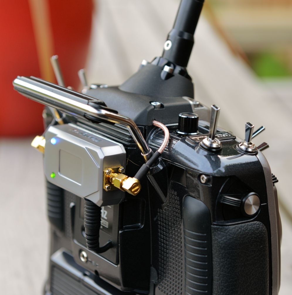 And you will need SMA connectors all types here Some are threaded, bulkhead, some are female, some have reversed pin. So SMA-RP as you would expect! Figure out what's needed to neatly extend the existing modules tiny U.FL from the board to the ATTENUATOR to the booster. And from booster to existing antenna. Which is the reverse of the U.FL connector pigtail. Its easy if you draw a diagram! Attenuator, goes between RC output and booster here To connect to your INTERNAL antenna you need one of these And a suitable SMA both ends cable. Ebay has all of these. And plenty of sellers that will make up cables to your length or "ends". Its fiddly but well worth it! If you are stuck, ask here: