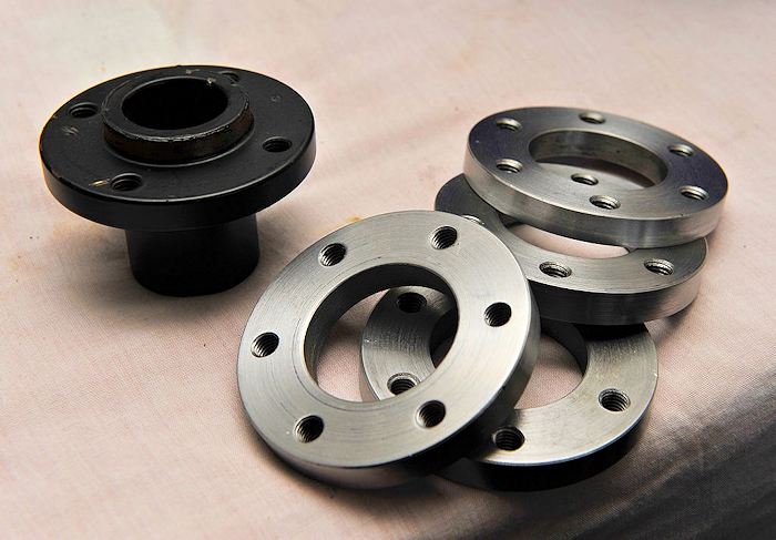 In order to fit the HEGAR alloy split rim wheels, I had to make new wheel adapters. I made four. Because I am building 2 powerchairs. These will be welded to the original Groove motors "hubs" (the black thing)
