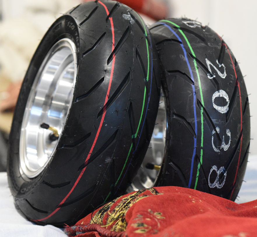 These are the 110/80 tyres on rims that I widened to 3 inches.