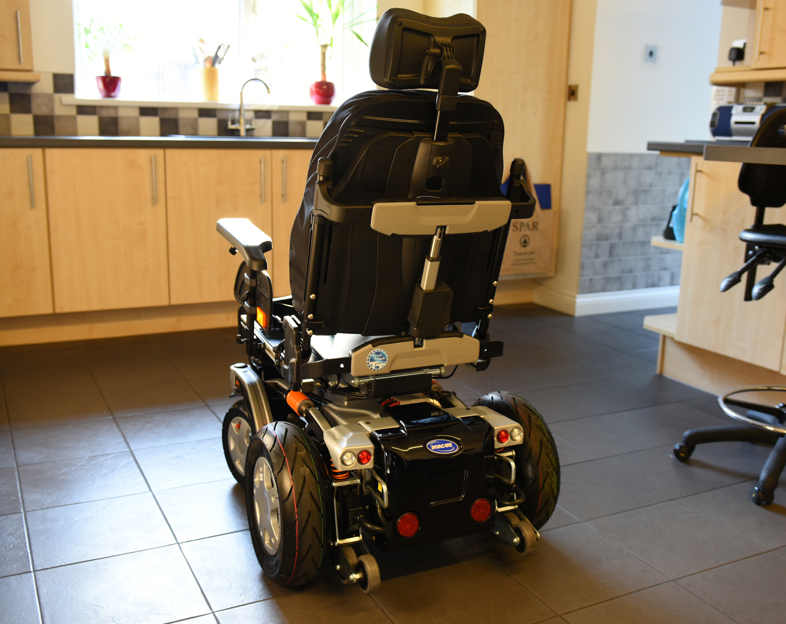 Also has user options: Seat lift, tilt, recline, and importantly power centre mount footplate in place of seperate swing away ones. As it allows the seat to move back a couple of extra inches for good CG position and shorter chair with better steering control. And narrower front end for easy access to doorways etc.