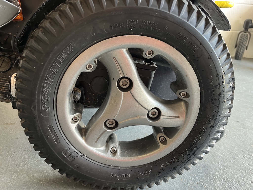 I had a worrying experience on Saturday. I have two of the same power chairs but one has 4 x 6mm bolts and the other 3 x 8mm bolts. The previous day I had had the wheel off the 3 bolt one and re-tightened it nipping up the bolts (I don't like to be too aggressive tightened bolts/nuts). Anyhow trundling along a country footpath I started hearing a knocking from one of the rear wheels. I looked down and could see it wobbling slightly and one of the 8mm bolts was slight proud. I just thought I must have missed nipping up that one when putting back the wheel but the other two would be suffice. Anyhow a few more hundred yards and the noise was getting louder and I looked down and the wheel was really wobbling, so I stopped and looked down at it and two of the three bolts were missing and the third was only just hanging on! I looked behind me and there were the other two bolts laying on the footpath a few yards behind. I was relieved I hadn't lost them back up the footpath somewhere. A lady jogger picked up the bolts for me. I can't walk but fortunately can mobilise enough to get myself out the chair and sat on a low wooden rail next to the footpath. But I thought what the hell am I going to do, I've not got any tools on me and if the chair drops off the one remaining bolt that probably only had 1 thread holding it on, I'm screwed. But luckily I was knew there was a toolstation about 1/4 mile away. So I did a click and collect or for some metric Allen keys, scribbled down the collection code on a scrap bit of paper, and an older guy with a couple dogs when and picked up the Allen keys for me and we got the wheel bolted back properly. That's the first time I've been really worried about being stranded somewhere. And will be more careful in future. Powered mobility is wonderful, until it goes wrong and leaves you stranded! But this incident was my fault, not the chair's