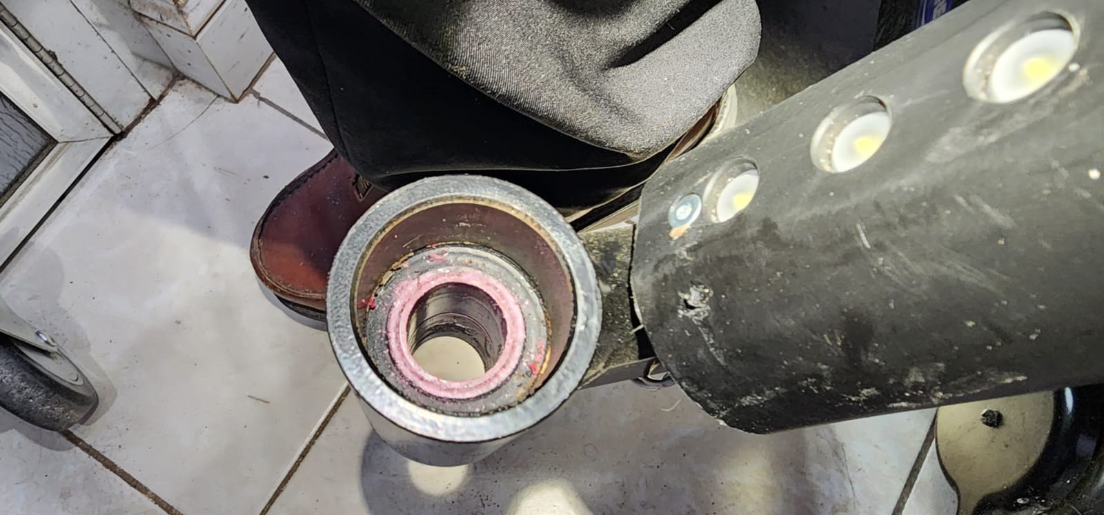 The chair has been lightly driven about 25 miles mostly indoors over tile and laminate flooring. From day one the chair just does not like to turn. It felt jerky and like the front caster too tight. Its making crunchy noise coming from the stems and not the wheels.