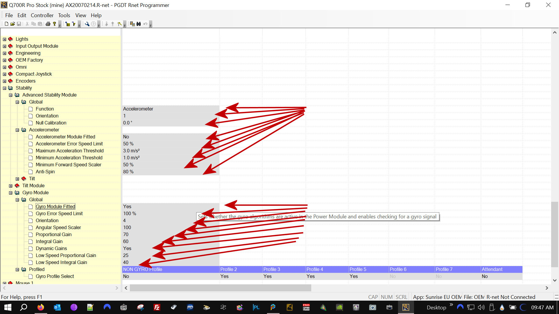 And you should set TURN ACCELERATION. MINIMUM TURN ACCELERATION. TURN DECELERATION. MINIMUM TURN DECELERATION (ALL 4) to 100.