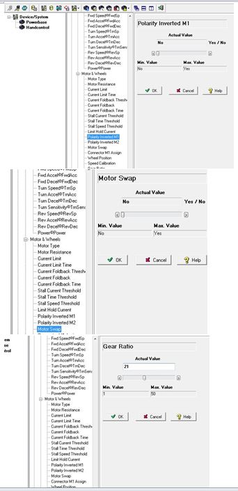 2) nearly all parameters of the motors are available to modify see 'polarity inverted' , 'motor swap', even 'gear ratio' these three pictures make one page as 'motor par' for the number limit, I really don't understand how can 'gear ratio' be changed ?
