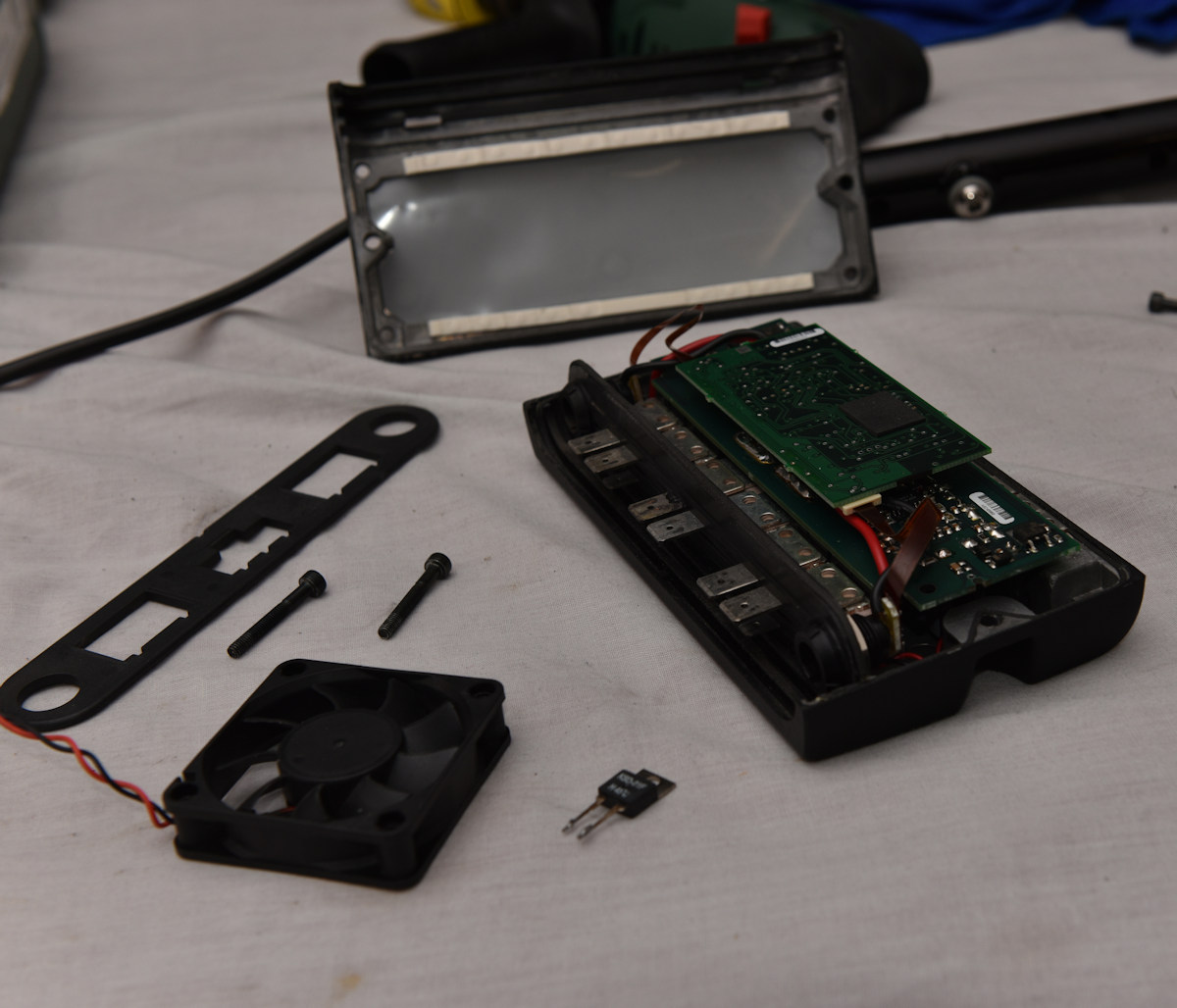 The reason I was asking what MOSFETs they use is to think on whether they could be replaced with a newer type with a lower Rds(on) (on resistance) and then tweak the current limit. I would expect that current limiting uses a sense resistor that could be changed. The firmware will most likely measure voltage across the sense resistor and once over the limit will roll-back to a lower voltage for a period of time. Changing the limit by changing the sense resistor will retain the same normal v rollback ratio without needing a firmware change.