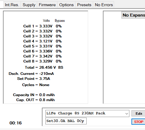 Will it charge the LiFePO4 pack at 12 amps, just without balancing? Or not even charge unless voltage is 28.2 or lower?