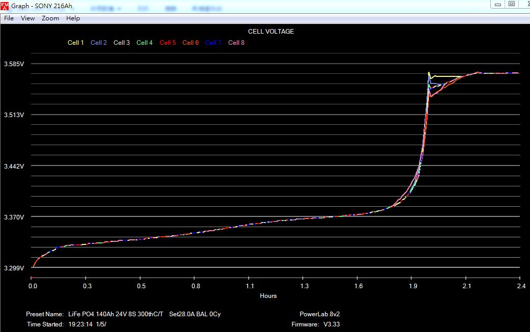 shirley_hkg wrote::D First try of PL8 on my lithium . It's a 72P8S pack with Sony 26650 cells . TWO years old and has been with BMS . :P