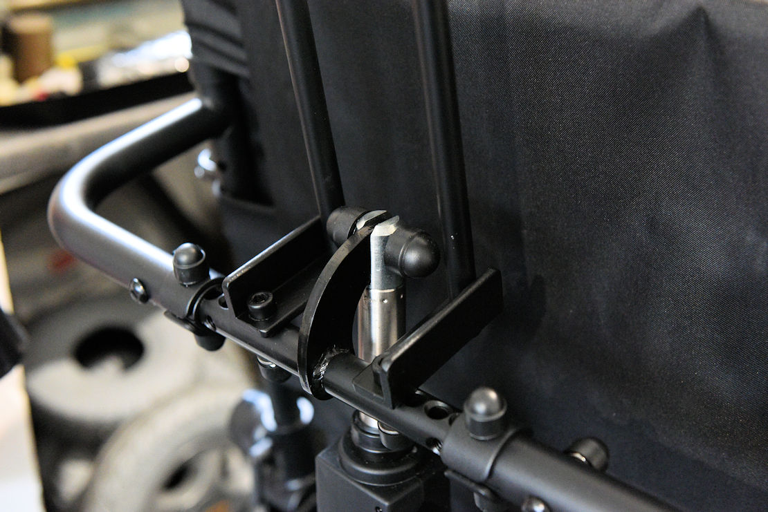 So I threw it away as you do, along with all the adjustable knickles that nobody needs, and then made a stronger simpler much lighter mount that mounts where the seat recline actuator goes on the cross bar on the seat back.