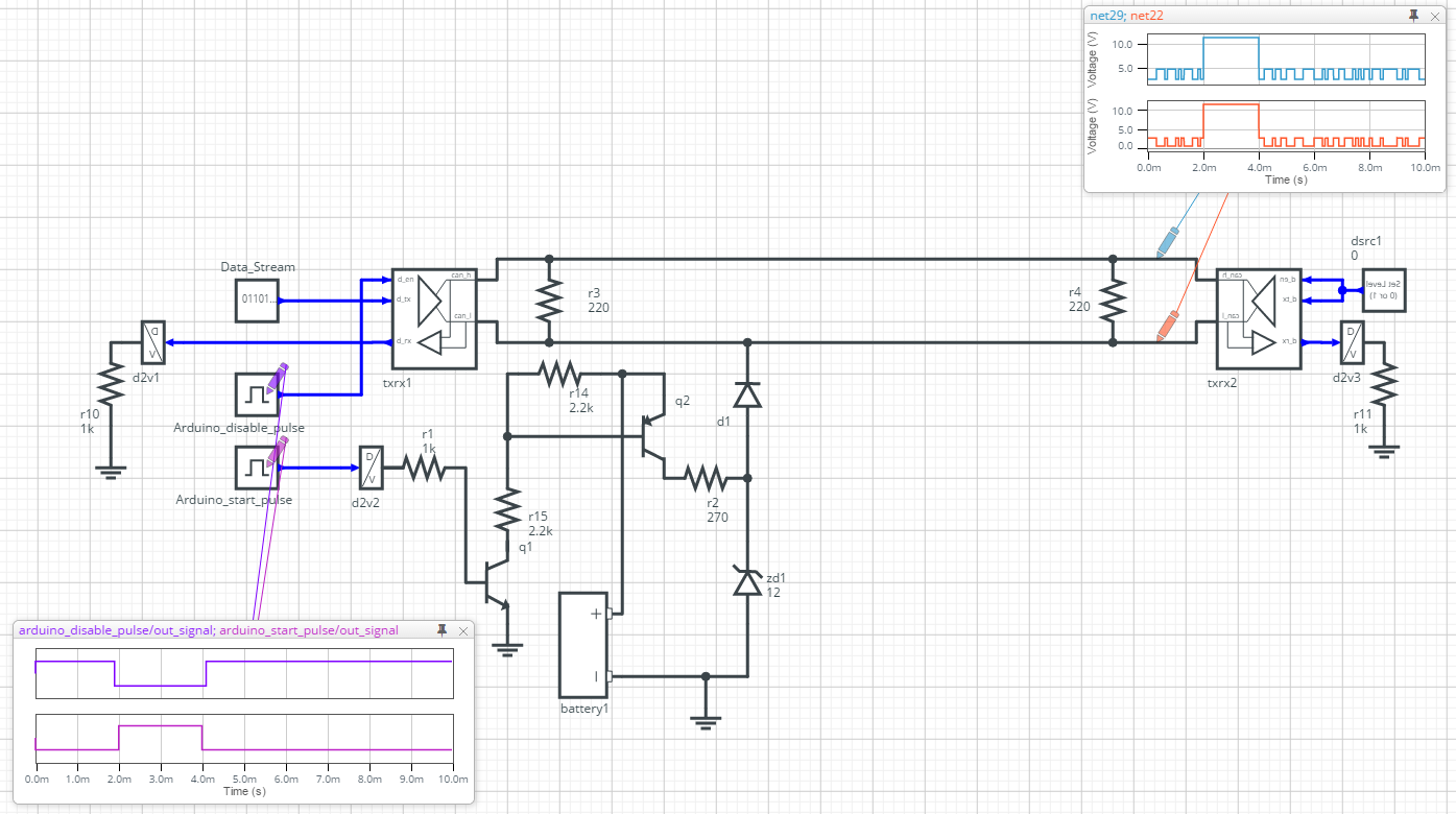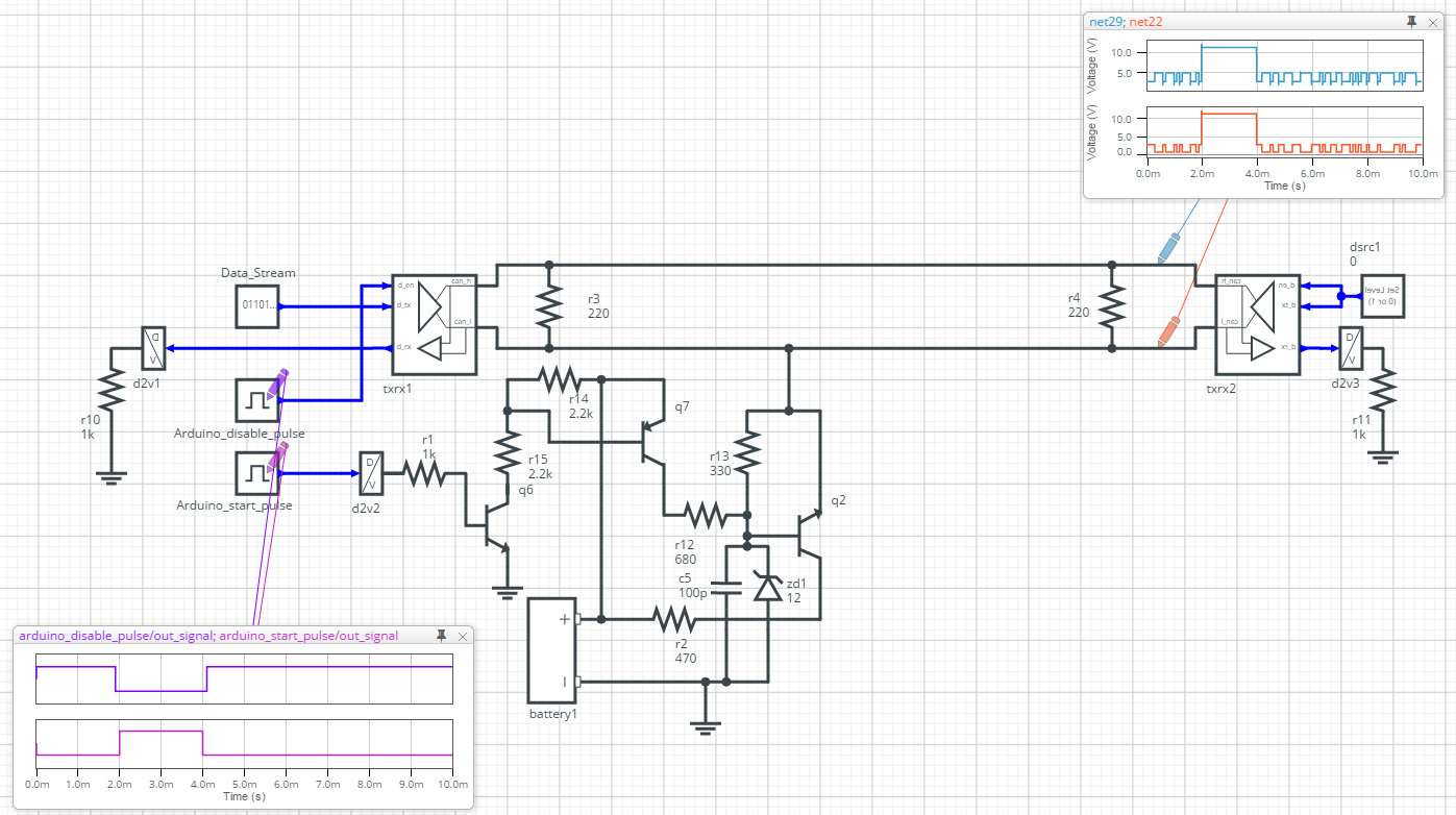 Irving wrote:I'm not convinced this circuit will work. Consider Q2 - this will only turn on if its base is 0.7v above the emitter potential. In other words the emitter is always 0.7v below the base voltage. Since this is driven by the Arduino @ 5v the 'pulse' to the Shark controller will never be more than 4.3v. I understood you needed a higher voltage than this.
