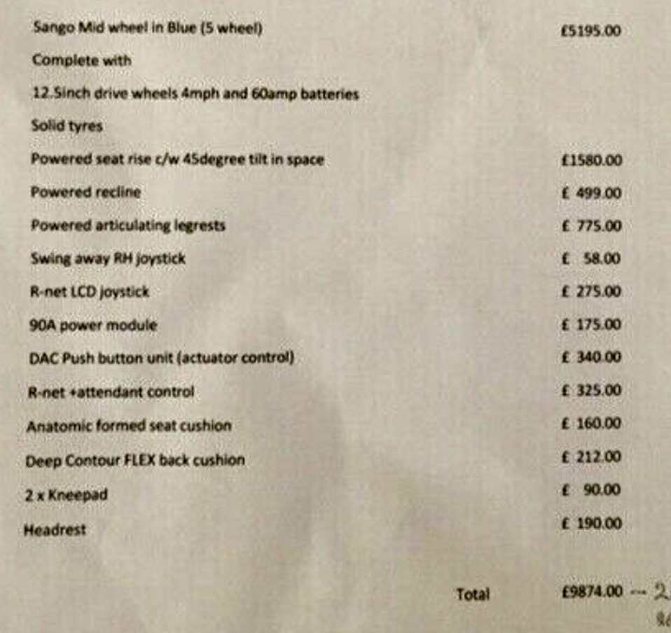 £4995 with VAT Relief and 4 pole as stock. But not enough info as to what that includes. It includes 4 pole and batteries and charger. But other than that who knows. We need a prescription form. Not an "assessement" because I already know what I want. I want to see it physically, and see what the options are. To see if its suitable and still affordable. And to see what deal I can do.