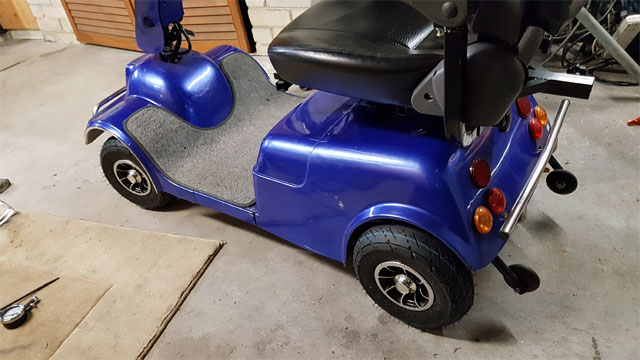 Next task is to reprogram the speed controller to get a bit more poke out of it. Presently limited to 6km/h, which is scary af when crossing streets without traffic signal protection.