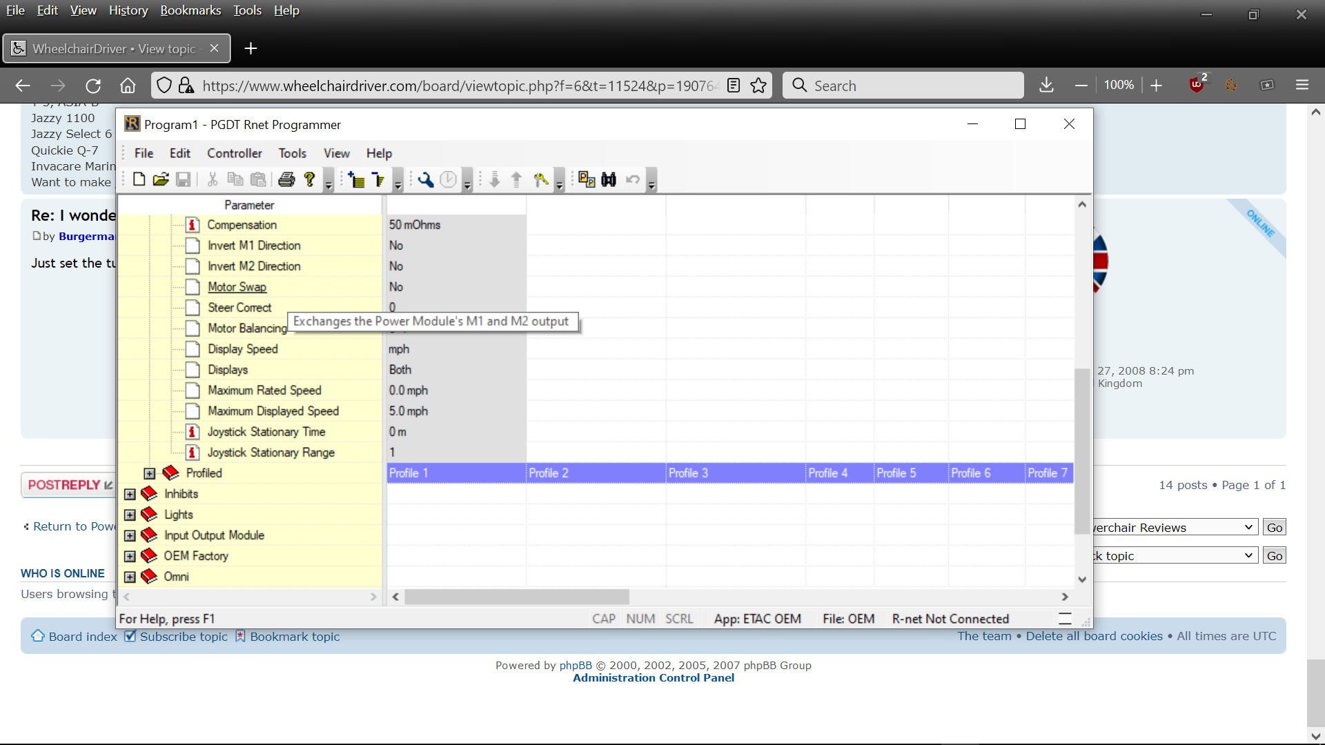 Remember these are from my 6mph chair. So it will require slightly different settings on your 8mph one. Esp on the turn speed. In fact it will mostly make it turn faster, and accelerate faster. (forward acceleration, and turn acceleration) So you could reduce these slightly.