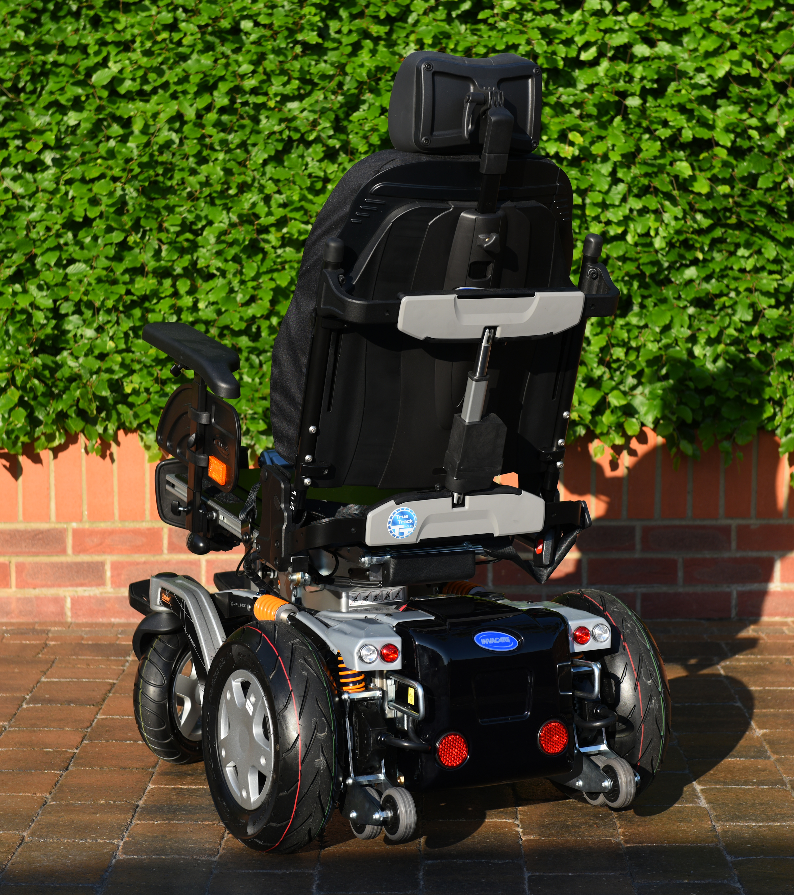 Brushless, 125Amp, riser, tilt, legs, recline, centre footplate, 38 miles / 59km range, good suspension on 4 wheels, oem programmer, 8mph (now 9 after bigger tyres and programming) and 3 year warranty. 30% discount, and zero VAT. Special order build, 3 weeks delivered. This is great for outdoors. Its configured correctly because I did it myself. And moved seat, fitted bigger tyres, reprogrammed, removed every bolt and greased, etc.