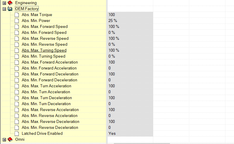 NOTE ALSO: You or your tech, will be unlikely to be able to set many of these settings to these levels, with a DEALER level programmer. Due to hidden walls being set up. So in this case you will need to use an OEM level tool, to set all the "walls" to either 100% or 0% using the OEM software, in the OEM, ABS section shown in the image below.
