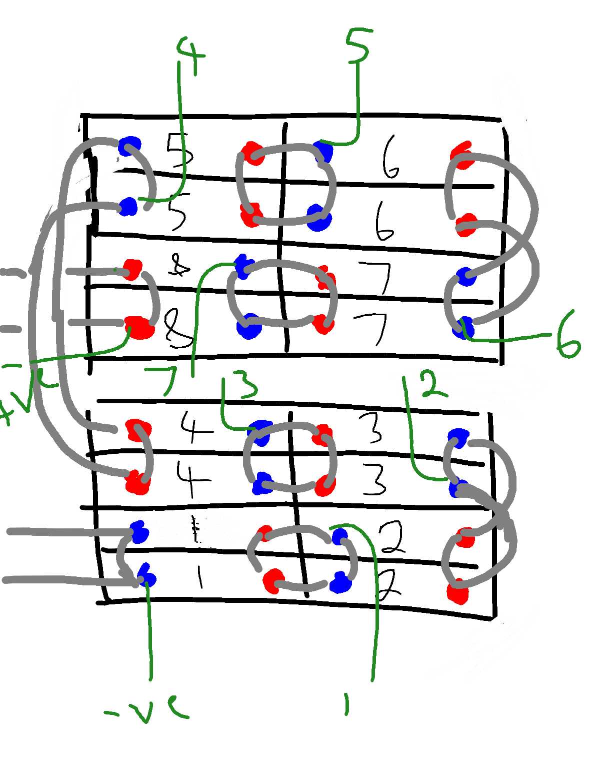 I was gonna double up on the series links as shown in diagram. I messed up making the second pack, cells 8 should have been where 5s are and 6 & 7 respectively.