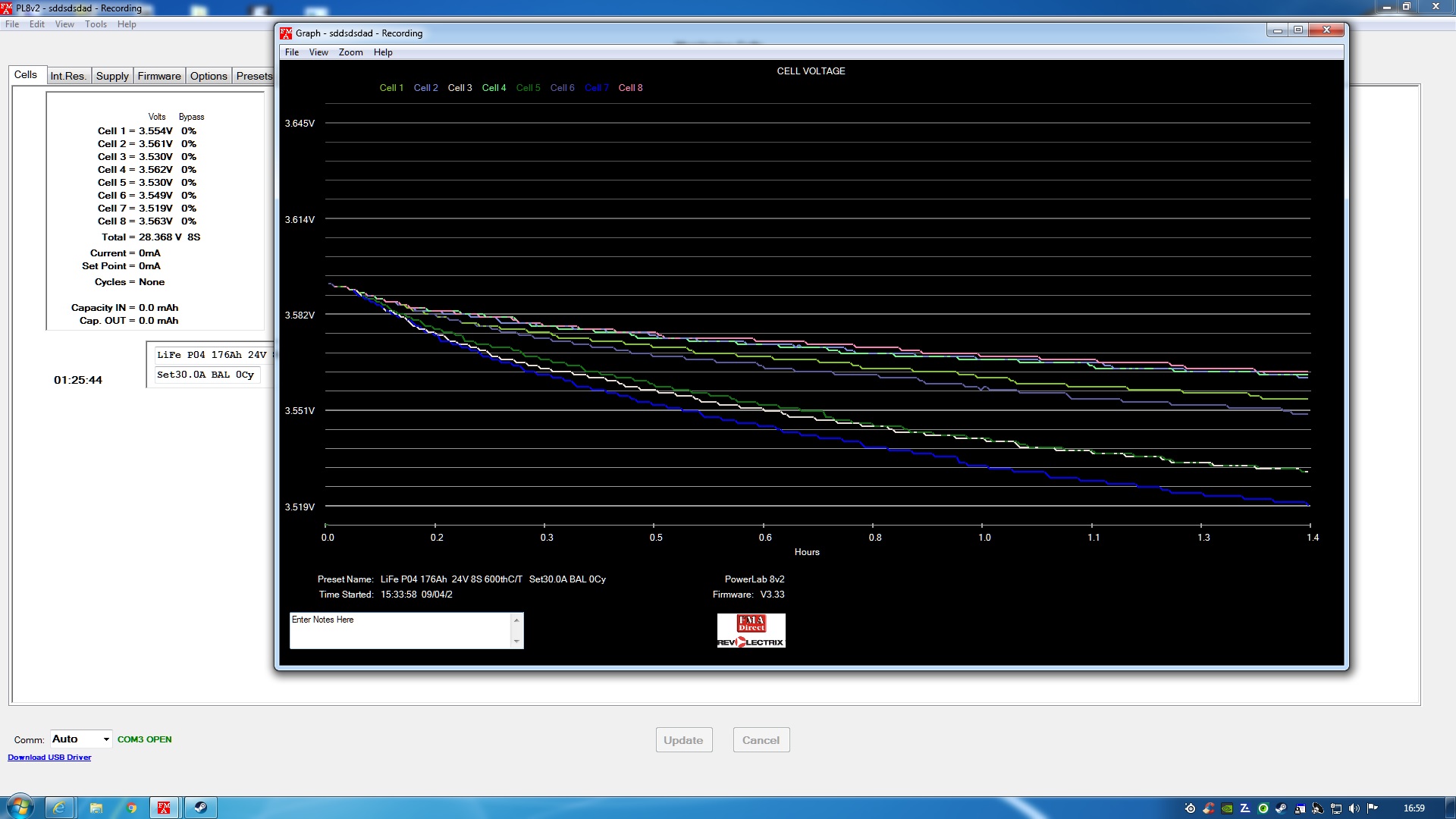 Burgerman wrote:You will know when its done. If you are using a preset I sent you, it should stop when the lowest cell drops to 2.90V and they will start to fall suddenly. THEN read the capacity, and you will know how much Ah you REALLY have. And which cell is the smallest capacity. The one that drops first.
