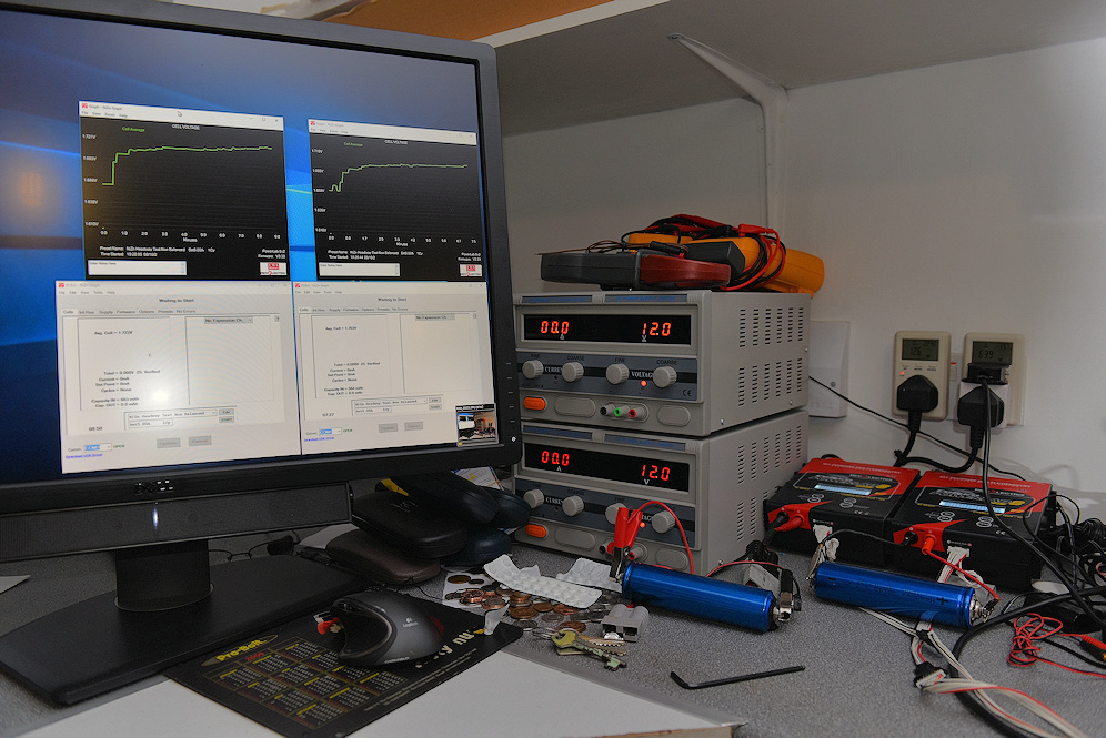 Testing to discharge @0.3C , ie 33A , to see if more Ah could be recored , compared to 15A that I used to do. Cells get warm up a bit now. :fencing