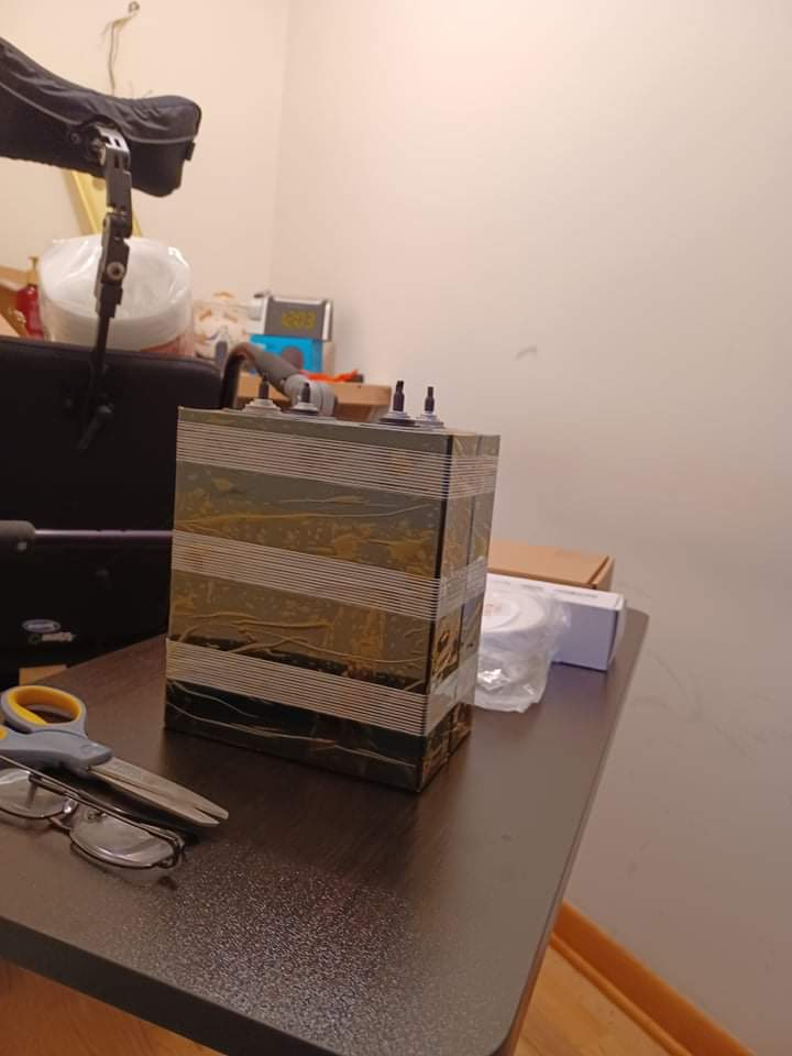 Starting to take shape. Wrapped each cell in 1 thin layer of kaptone tape then used ultra thin permanent double sided tape to a sheet oh high temp silicone between for insulation then 3 bands of reinforced strapping tape 1 layer. I'm going to test these two next for capacity then repeat same for rest of the pack