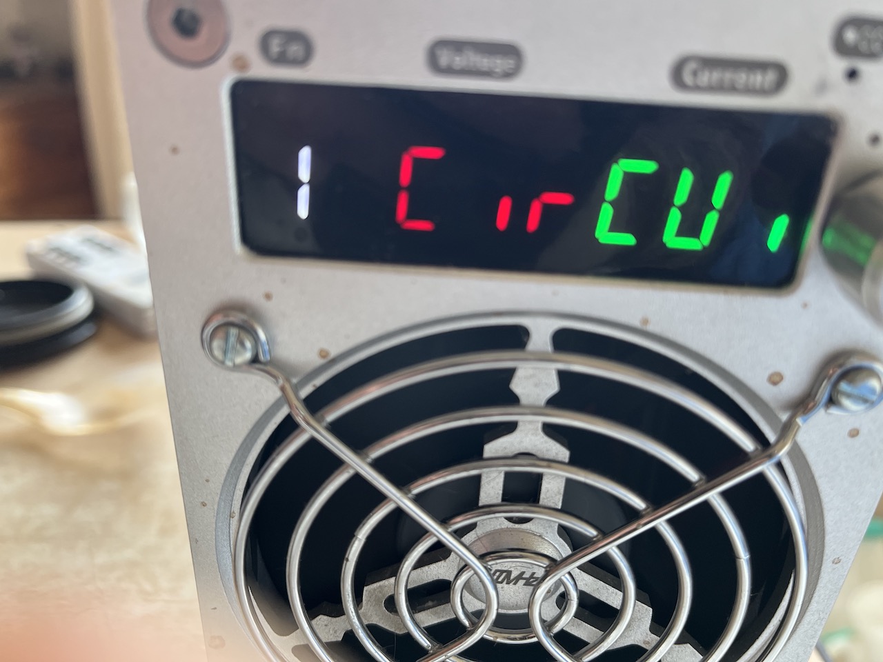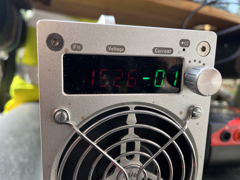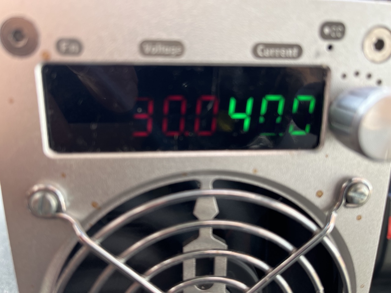 Then set current and volts to 40A and 30V as seen in photo. (the photo is a bit blurry but the LED display is fine in real life)