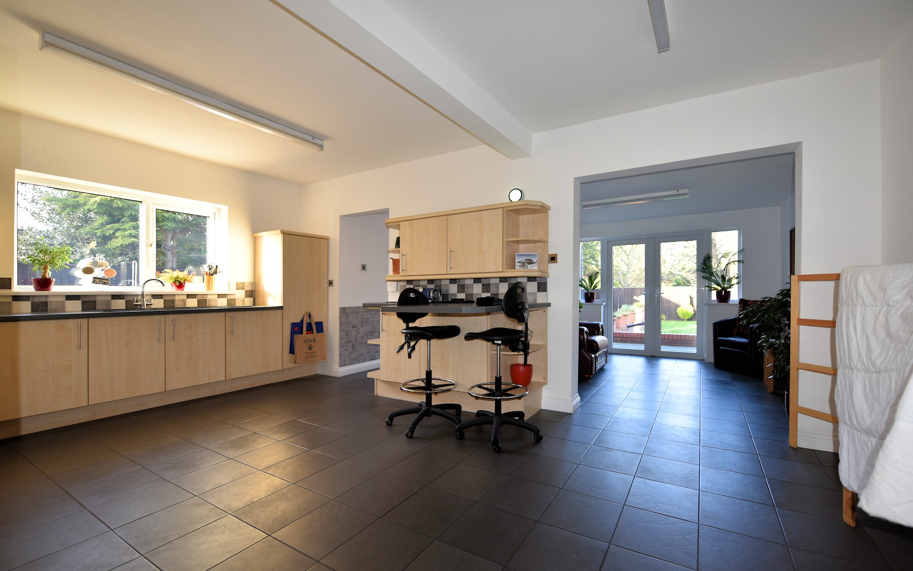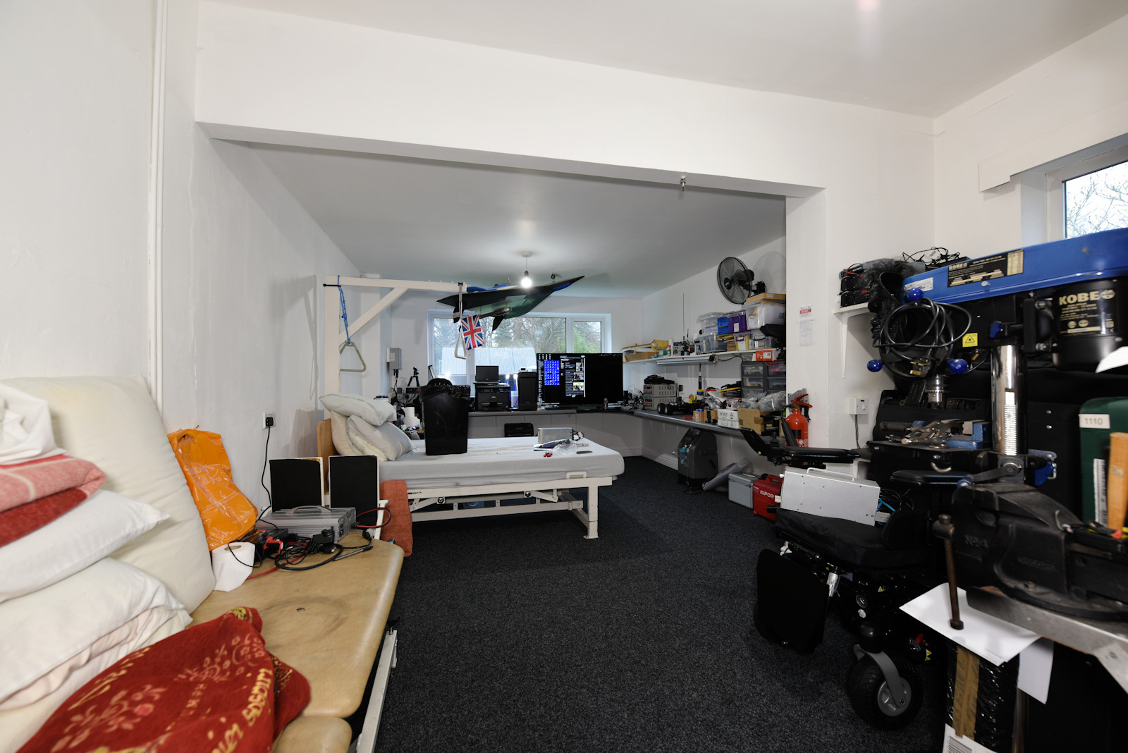 The other half was industrial carpet tiles in dark grey. Almost impossible to damage. When one gets paint/shit/oil/whatever on that cannot be cleaned off, I just swap out a handful as required. All are exacty the same in every room inc my bedroom, hallway, living room, etc. So only need keep one type of spare! I have 6 boxes of extra tiles. These look just as good as when first put in around 6 years ago.