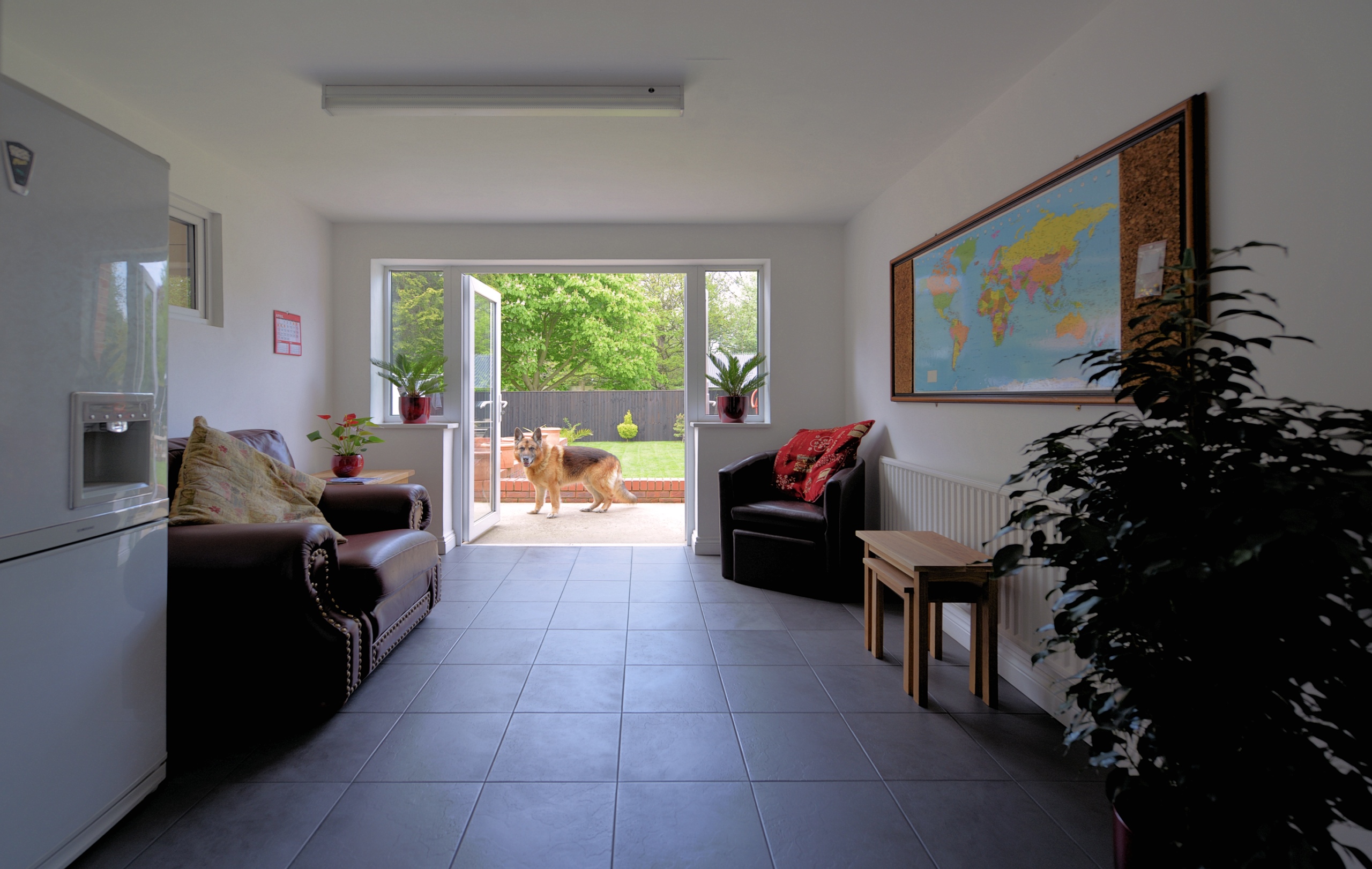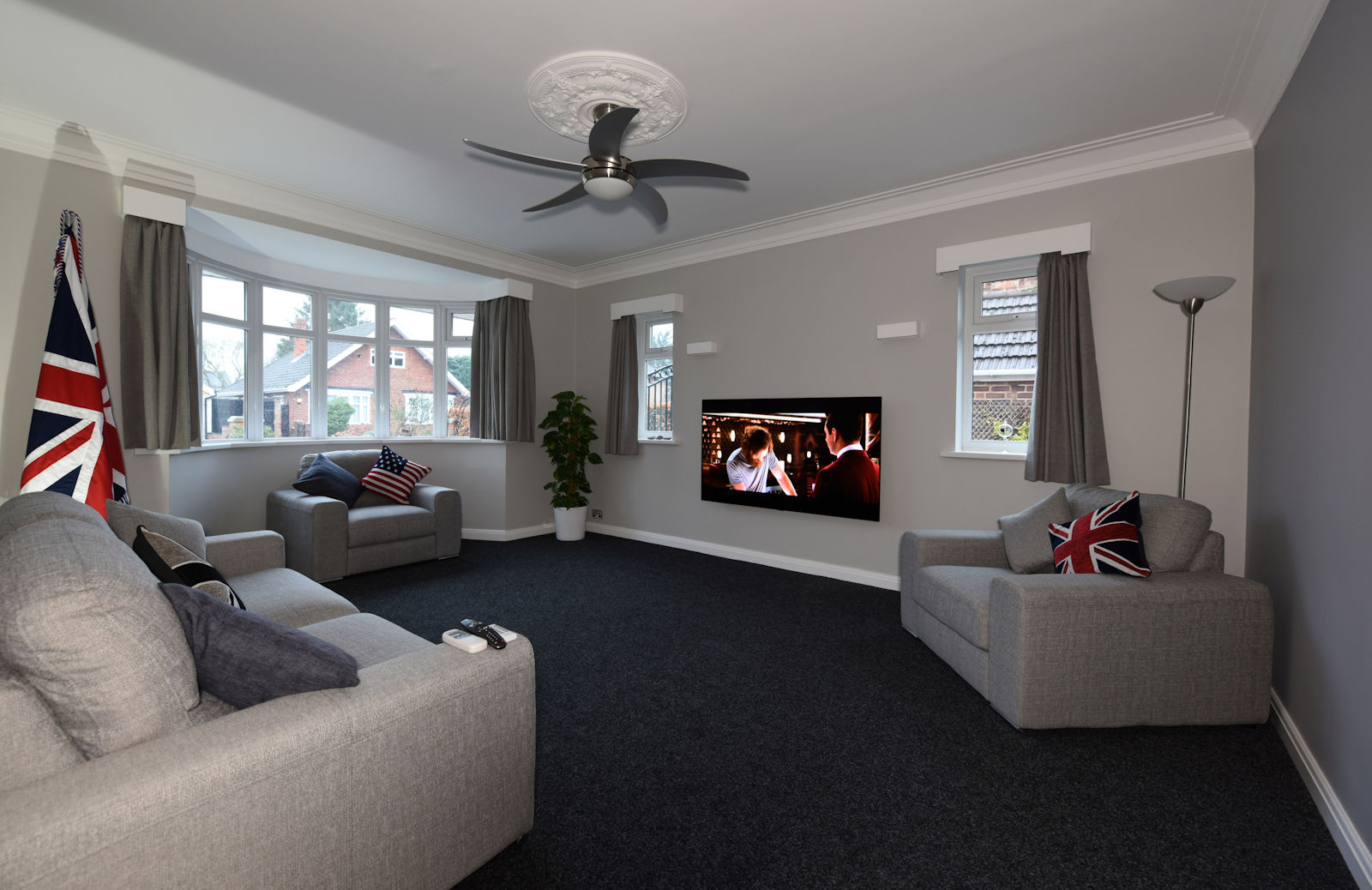 Same carpet tiles living room. Aso in hallway. All through house in one go.