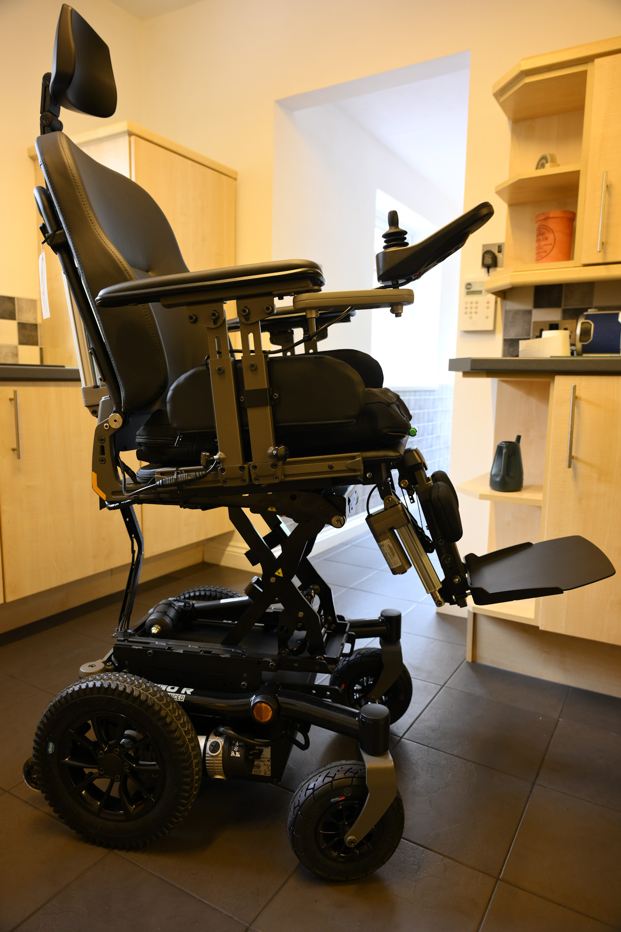 They will also cover any rehab options you demonstrate a need for. In my case that was a power centre footrest, to allow the seat to go back so it steers properly. And lift, tilt, recline etc too. The total price was about 12.5K on the prescription form with my prefered wider softer arms, double arm uprights for strength, and a few other custom alterations inc a colour (but not CJSM2) joystick. They had no issues with the 120A power module or 4 pole motors. And no problem with the 80Ah battery. Another upgrade from the 60Ah ones they prefer for cost reasons... They only do 4 pole anyway on the diets sango advanced chairs. Because it is only for around the house I chose solid flat free tyres, as at 4mph thats adequate. Especially indoors!