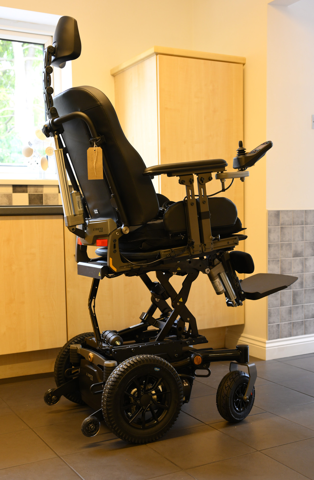 They will also cover any rehab options you demonstrate a need for. In my case that was a power centre footrest, to allow the seat to go back so it steers properly. And lift, tilt, recline etc too. The total price was about 12.5K on the prescription form with my prefered wider softer arms, double arm uprights for strength, and a few other custom alterations inc a colour (but not CJSM2) joystick. They had no issues with the 120A power module or 4 pole motors. And no problem with the 80Ah battery. Another upgrade from the 60Ah ones they prefer for cost reasons... They only do 4 pole anyway on the diets sango advanced chairs. Because it is only for around the house I chose solid flat free tyres, as at 4mph thats adequate. Especially indoors!