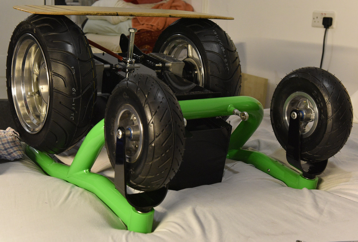 Anti tips fitted. 80mm inline skate wheels. 8 new stainless steel bearings. Because the new 10 inch wheels are about 30mm higher overall.