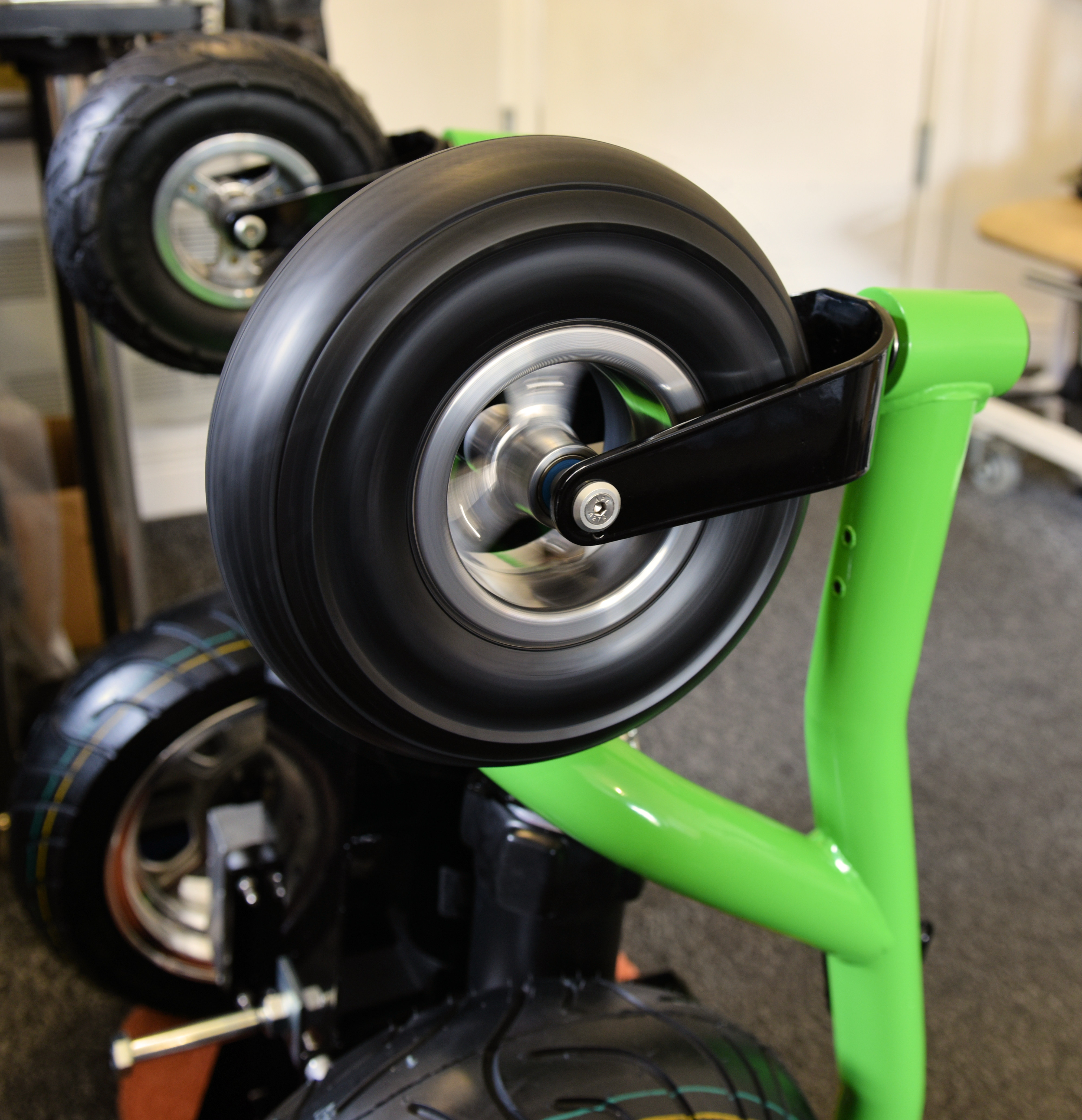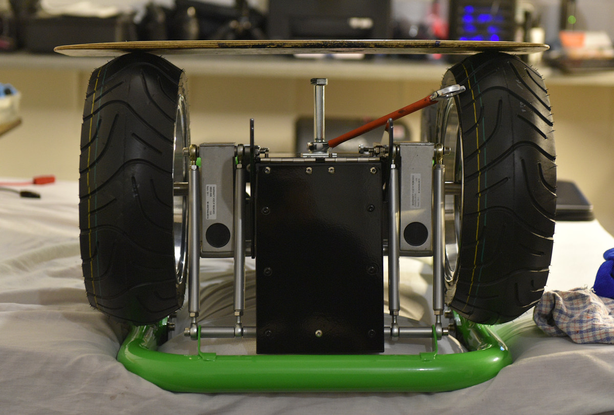Anti tips fitted. 80mm inline skate wheels. 8 new stainless steel bearings. Because the new 10 inch wheels are about 30mm higher overall.