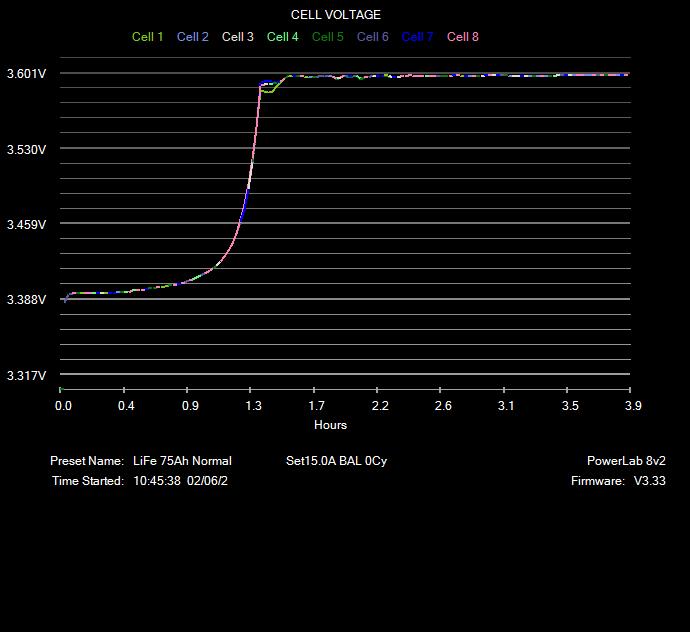 i have to see what BM set for me - will post my results later tonight - i have balance to start at 3.5V i believe - Term. at 200mA