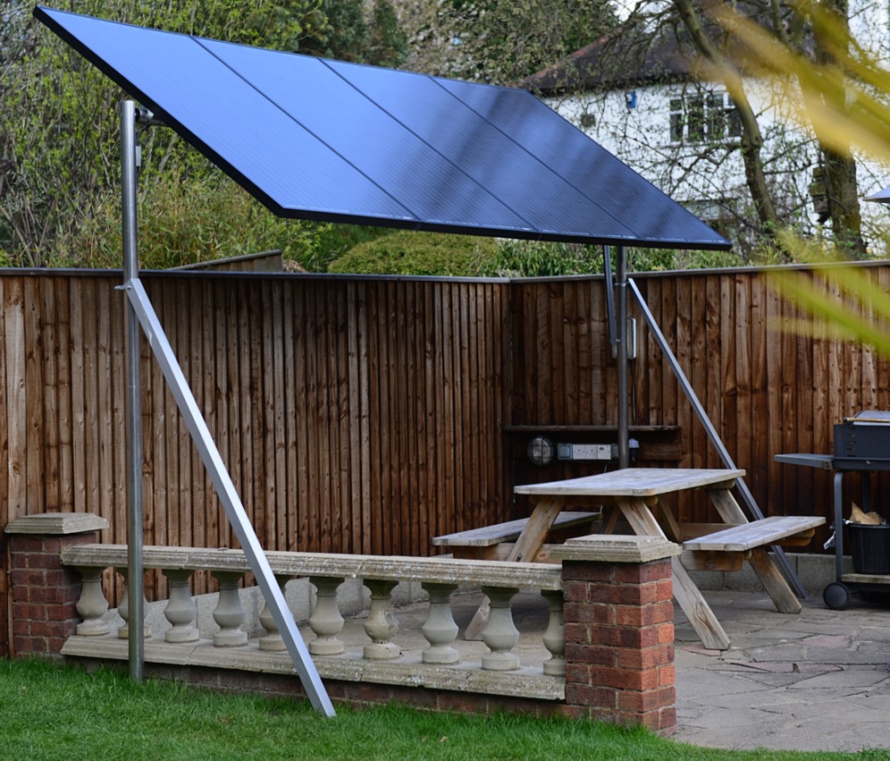 Now 3 solar panels. All are 250 Watt, 30.1v peak efficiency, 37.5v Open circuit in direct sun. These are connected in parallel, to one set of 6 sq/mm cables that go into the room below. 10sq/mm would be better. But more expensive. This is a short run so acceptable. That's 750 watts theoretically in high sun. Or it would be in the Sahara in summer. In reality its nearer 600 in the UK at peak times maximum (I think). I will monitor this, using some fancy metering to see if its going to pay for itself WITHOUT the Government payment scheme. Because I am not claiming anything from the government. This is an experiment to see if solar - done cheaply - is viable ON ITS OWN without government hand outs. In total, I will have 10 panels eventually. This website is paying for it. So if it pays we win. If it doesn't pay we lose but not out of my own pocket... You got to love experiments and the internet! When I add another 3 on the higher dormer bedroom roofs, and connect to another inverter then this will be a separate system but output will be double. Then a further 4 where you can see that picnic table in the picture below. And ongoing as finances and roof space allows. Its daft not to do so.