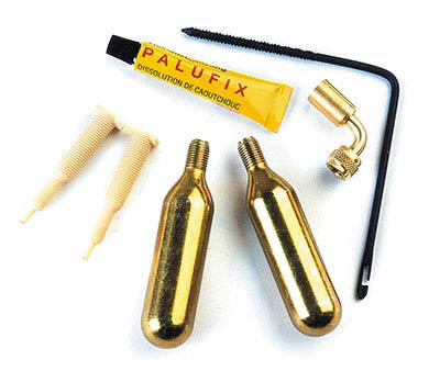 In addition you can keep a tiny CO2 tubeless repair kit somewhere (opposite) on